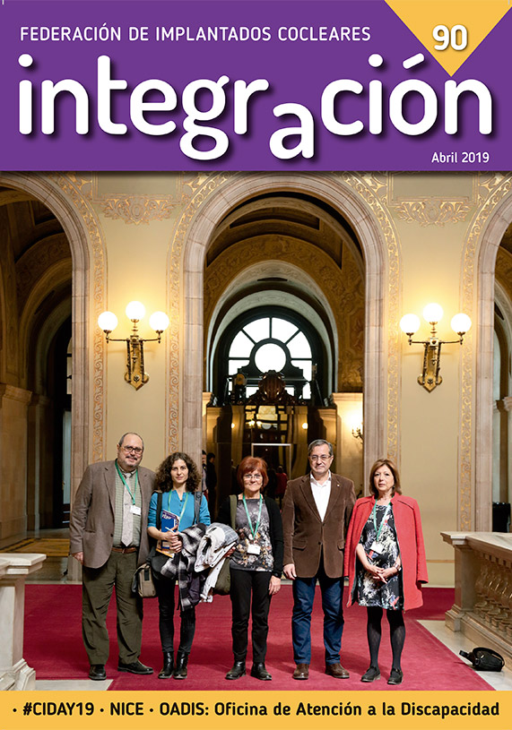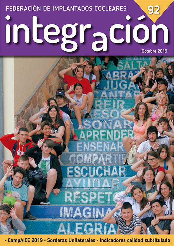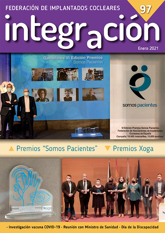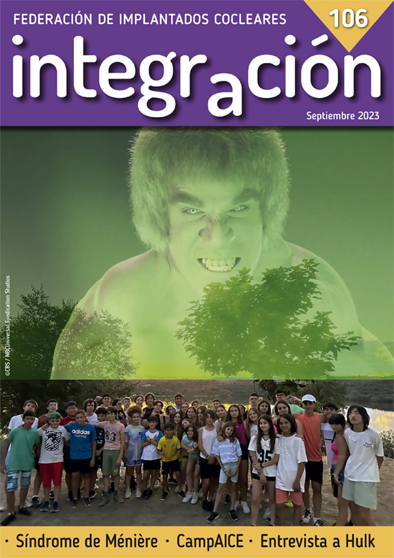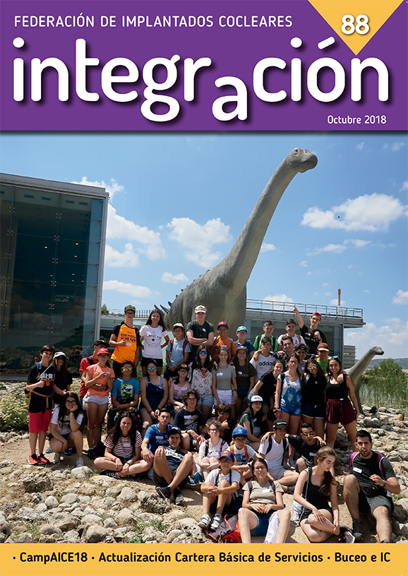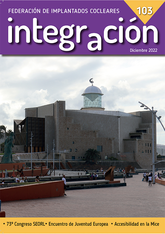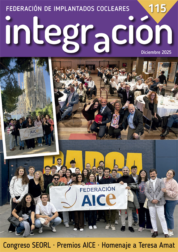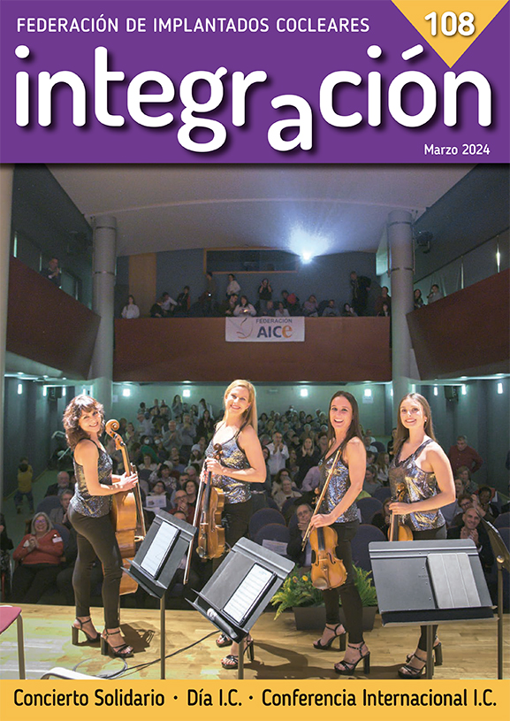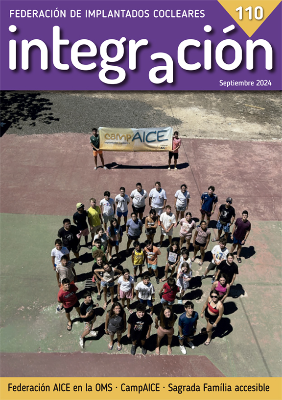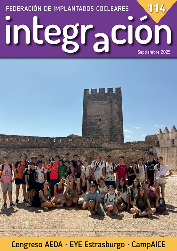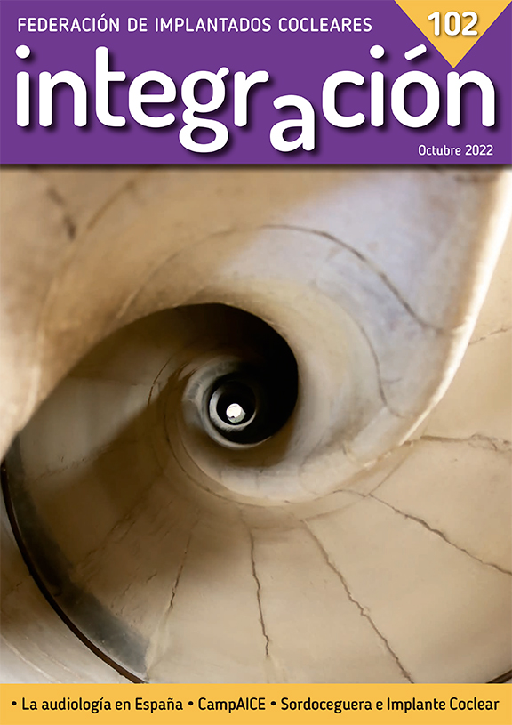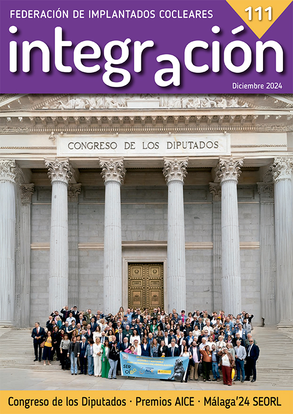 Revista Integración, revista oficial de la Federación de Asociaciones de Implantados Cocleares de España, se edita con el soporte del Ministerio de Servicios Sociales, Consumo y Agenda 2030: Por Solidaridad, Otros Fines de Interés Social