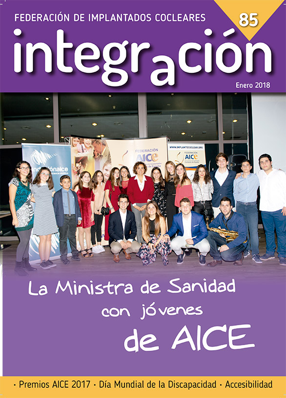 Revista Integración, revista oficial de la Federación de Asociaciones de Implantados Cocleares de España, se edita con el soporte del Ministerio de Servicios Sociales, Consumo y Agenda 2030: Por Solidaridad, Otros Fines de Interés Social