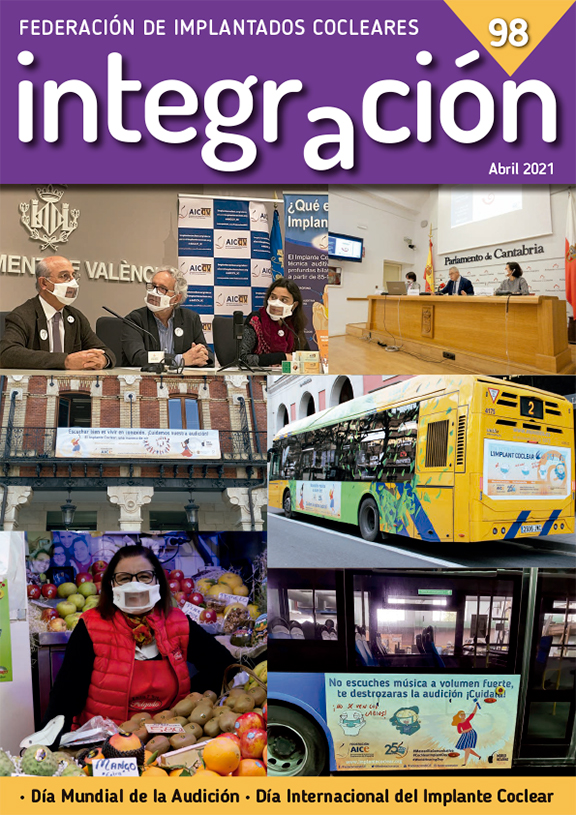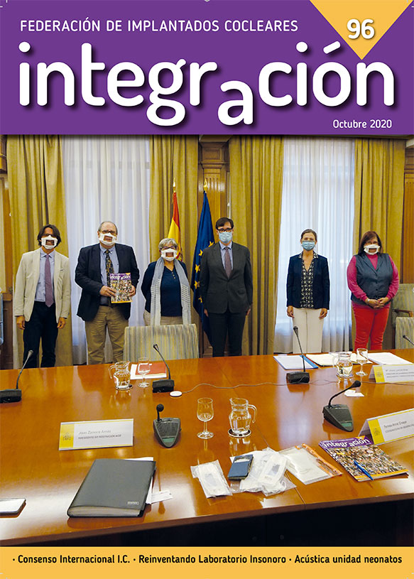 Revista Integración, revista oficial de la Federación de Asociaciones de Implantados Cocleares de España, se edita con el soporte del Ministerio de Servicios Sociales, Consumo y Agenda 2030: Por Solidaridad, Otros Fines de Interés Social
